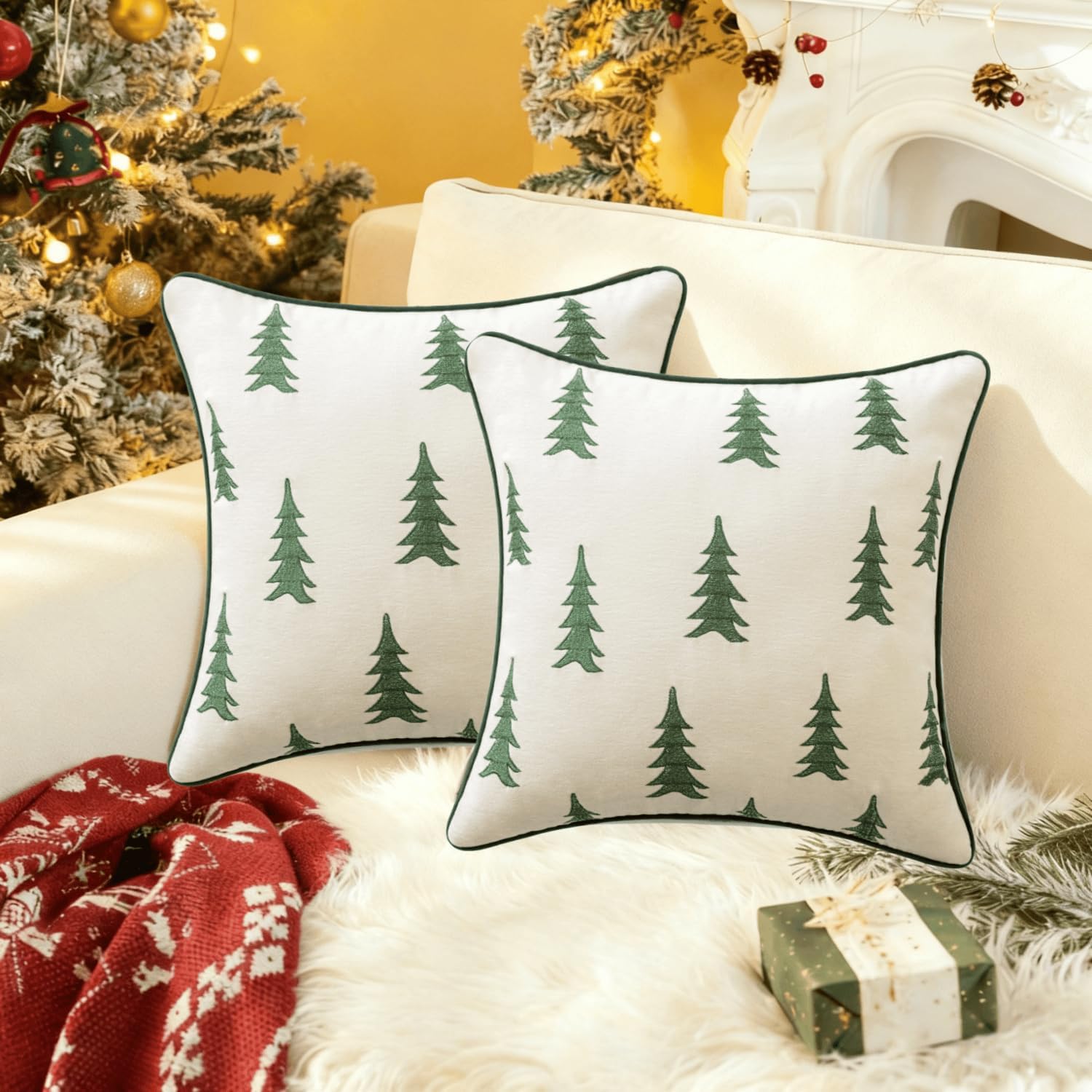When the December Stars Glow Through Your Window...It's time to wrap your home in some cozy holiday cheer! Snuggle up with our cuddle-ready Christmas tree pillowsâtheir soft chenille fabric with embroidered edges feels like hugging a lush little holiday icon, while their 3D stitched pine needles peek out with warm charm (and just a hint of festive magic!). These detailed Christmas tree pals clutch tiny gold bells, as if whispering "Merry Christmas!" between twinkles. Suddenly, your room feels cozier: the air hums with spiced hot cocoa vibes, the buttery crunch of Christmas cookies, and that perfect just-warm-enough glow. These aren't just decorationsâthey're instant mood-makers: đ Christmas story time? Your chenille tree pals huddle close (but promise to listen tight!) đ Gift-wrapping night? They cheer from the table with silent, stitched smiles â Hot cocoa breaks? Their soft embroidered-edge bodies guard your cocoa mugs like tiny cozy guardians Let their warmly festive charm drift from your sofa to your reading nookâturning everyday spots into storybook Christmas corners. (Love them? Our friendly "tree-keepers" are always awake at email!)
