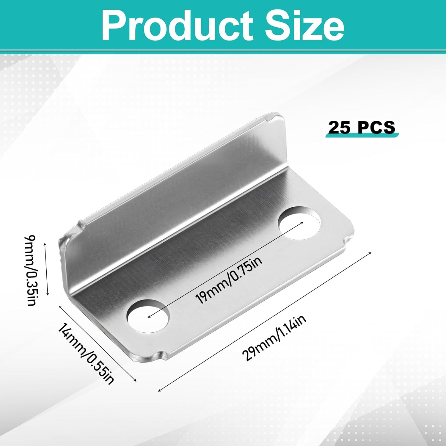 Product Name: 25 Pcs Strike PlateProduct Color: SilverProduct Size: 0.55 x 1.14 x 0.35 inchesProduct List: 25 Pcs Strike Plate