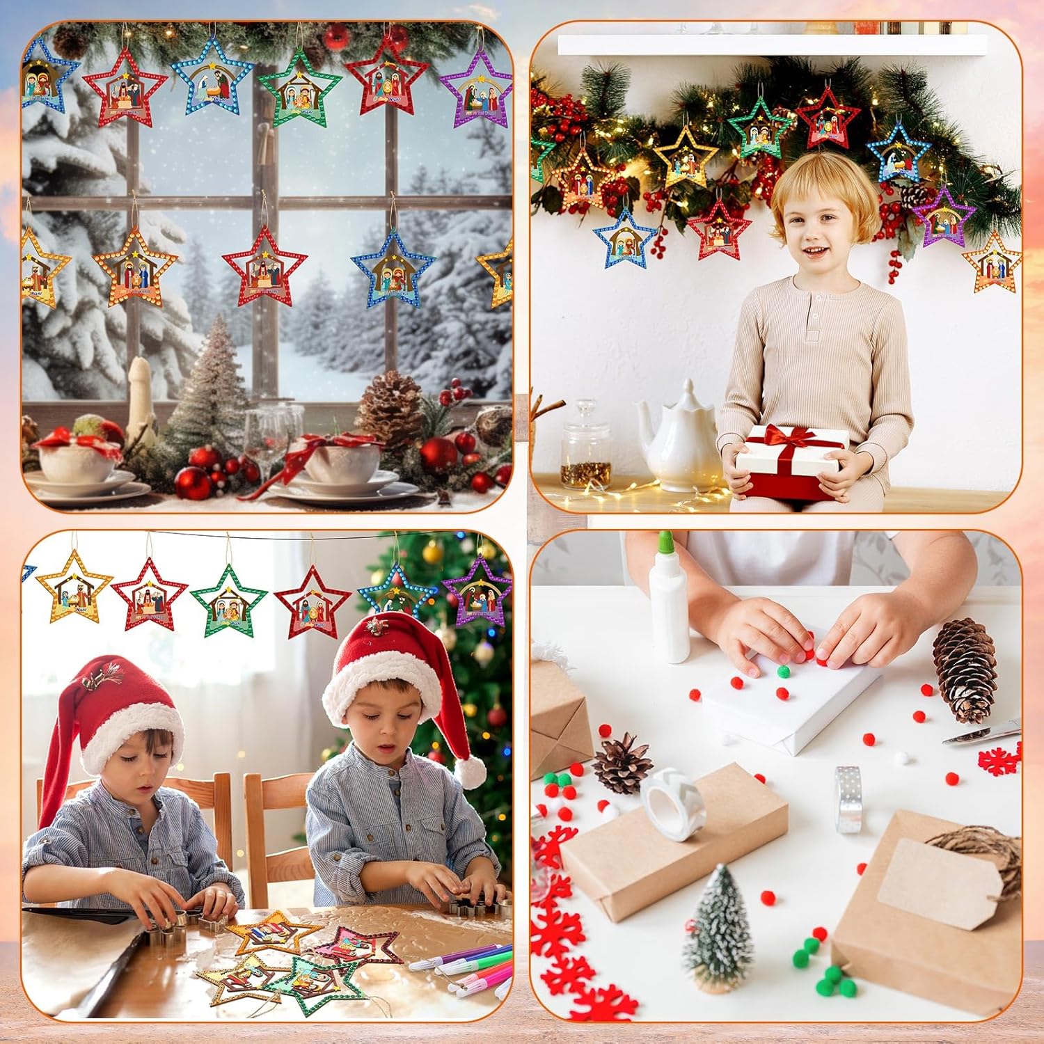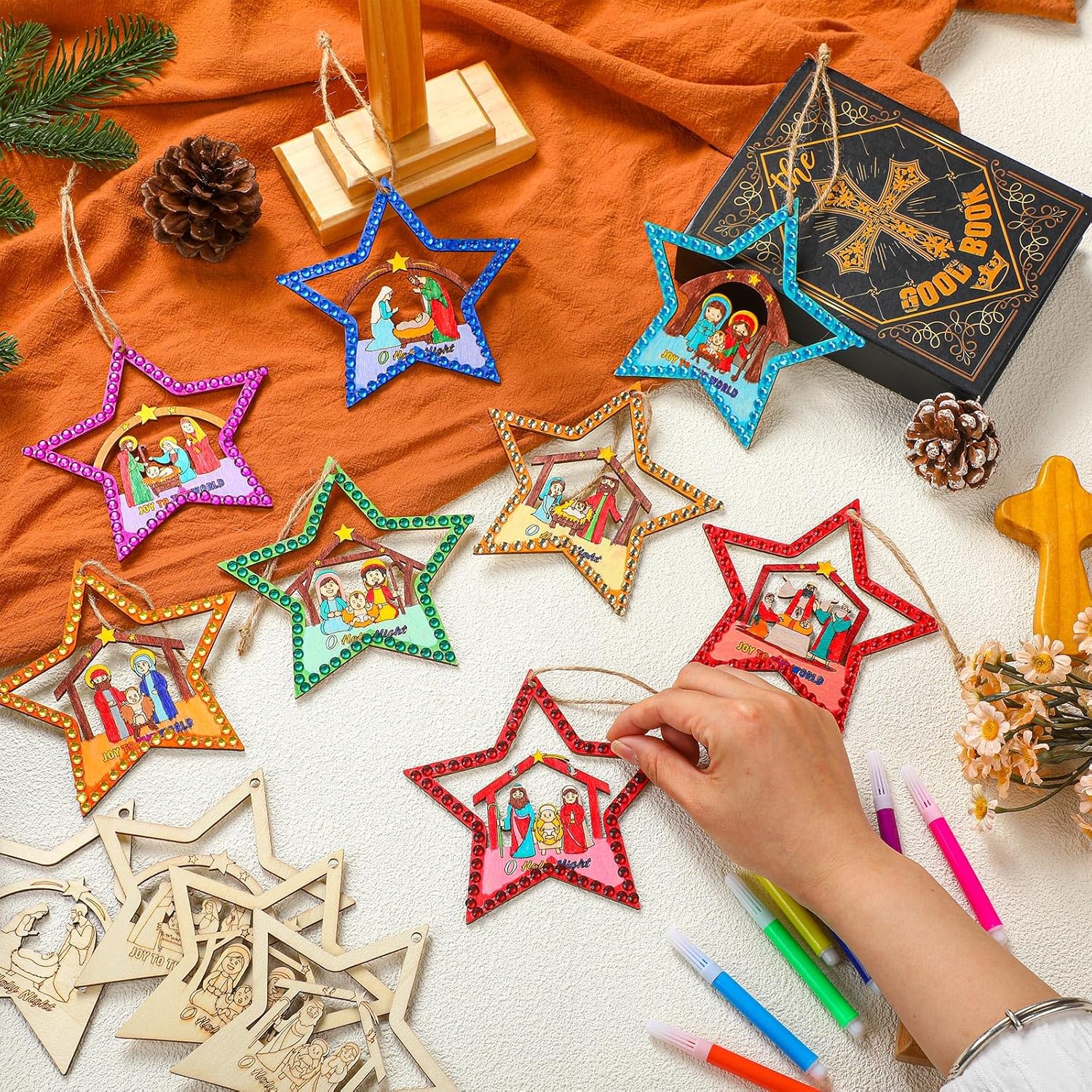 Features: All-inclusive Crafting Fun: Hassle-free creative experience! Provides all essential materials in one box: pre-printed wooden stars, colorful pens for decorating, shiny gem stickers for embellishment, and twine for hanging. Ready for instant crafting enjoyment Thoughtful Gift-ready Present: The perfect holiday gift for creative people! Neatly packaged in a festive gift box, this complete craft kit makes a convenient, meaningful, and engaging present for Christmas, encouraging festive fun and artistic expression Specifications: Material: wood, gem Color: wood Size: 5.67 x 5.35 inch/14.4 x 13.6cm Package includes: 48 x Wood Christmas nativity craft 48 x Twine 8 x Gem sticker 1 X 12 color pens Notes: Manual measurement, please allow slight errors on size. The color may exist a slight difference due to different screen displays