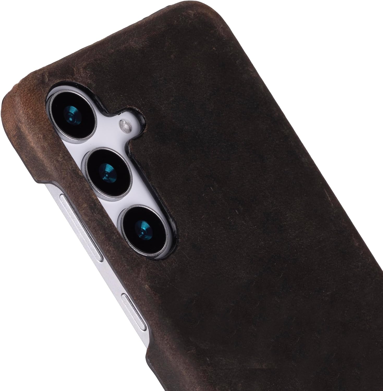 Protect your compatible with Samsung Galaxy S25 Plus with our natural leather case, crafted to provide both style and protection in a compact design. This leather phone case keeps your device secure and stylish. Durable luxury full-grain leather. Soft suede interior for added scratch and impact protection. 360 bumper to protect against daily wear and tear. Reinforced polycarbonate siding for enhanced impact resistance. Additional back padding for shock absorption. Slim, ergonomic design for comfortable use and portability. Compatible with wireless charging Compatible with Samsung Galaxy S25 Plus (6.7").