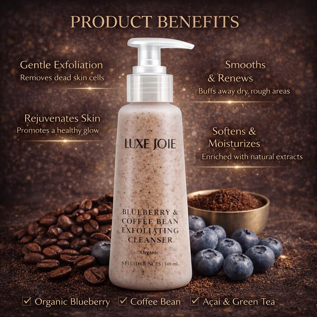 Enjoy a refreshing cleanse with this Blueberry & Coffee Bean Exfoliating Cleanser, a foaming gel face wash designed to gently polish while cleansing. The unique gel texture contains blueberry seeds and coffee powder that provide a mild exfoliating effect, helping skin feel smoother and refreshed without the harsh, scratchy feel of traditional scrubs. As you massage, the cleanser foams lightly and rinses clean, leaving skin feeling fresh and comfortable. Customers consistently mention the bold blueberry scent, the gentle exfoliating feel, and how a small amount goes a long way. This exfoliating cleanser is best suited for those who want a light polish rather than an aggressive scrub. How to use: Apply a small amount to wet skin. Massage gently for 20–30 seconds, avoiding the eye area. Rinse thoroughly. Use 2–3 times per week or as tolerated. Follow with your favorite moisturizer. What to expect: Gentle exfoliation (not heavy grit) Foaming gel texture Strong blueberry fragrance Clean, soft feel after rinsing If you prefer intense, gritty exfoliation, this cleanser may feel more mild by comparison. For many users, that balance is exactly what makes it a favorite.