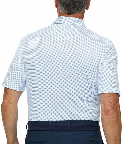Built upon a unique combination of performance, luxury and style, Greg Norman Collection is a leading worldwide marketer of golf-inspired apparel. Each product we make focuses on those tenets- performance, luxury and style. The Greg Norman Performance Polo is no exception. One key feature of this polo is performance. This polo is made from the most comfortable technical performance fabric in golf. The industry leading fabric offers advanced moisture wicking performance with a luxury look and hand feel. Adding to the performance is our PlayDry technology. PlayDry is a leading moisture management system that wicks perspiration away from the skin and transports it to the garment's outer layer so it can evaporate into the air. You stay cool, dry and comfortable. Play Dry, Play Better. Inherent to this fabric is the added bonus of a UPF feature. In terms of styling, this short sleeve polo also has a self-fabric collar and a traditional 3-button placket for closure. It is a classic fit that is roomy and breathable to maximize the wearer's comfort wherever it takes them through their day. With an array of color and pattern options, there is a style to suit every taste. Whether your taste is a playful hidden shark camo, a bold stripe or a subtle dash pattern, there is a style to suit you. Each color and pattern is emblazoned with the brand's iconic four-color shark logo heat seal. Look closely to find branded buttons at the placket as well.
