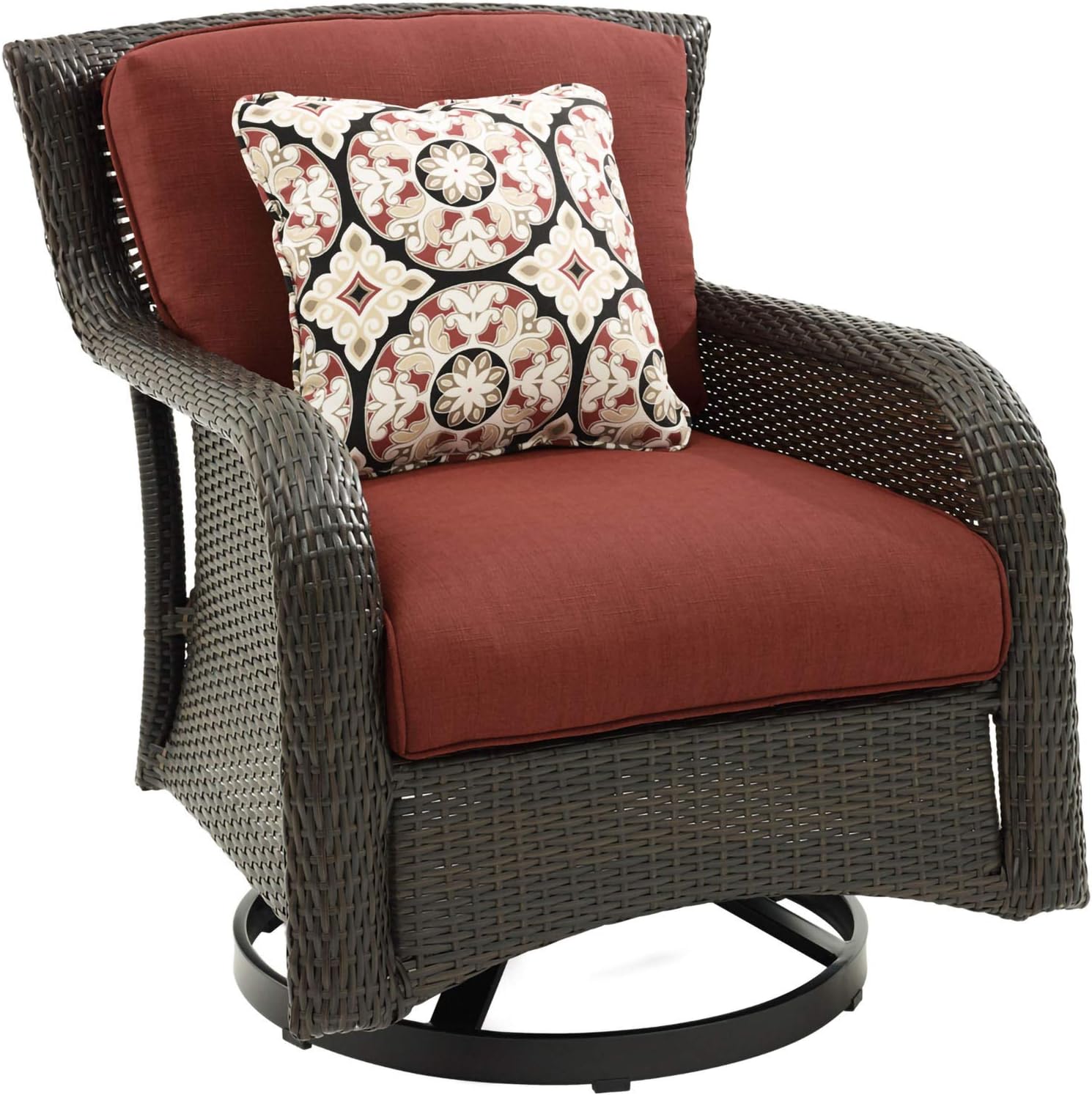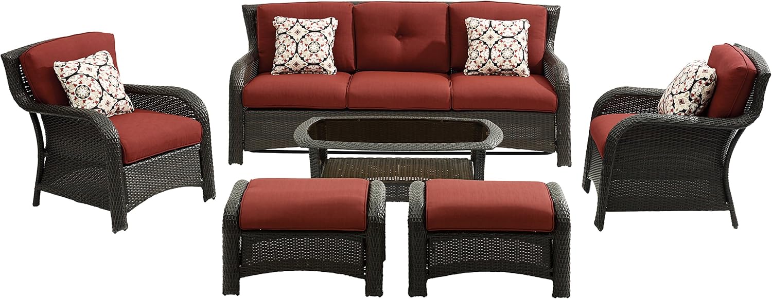 | Item Type Name | Hanover Strathmere 4-Piece Patio Conversation Set with Couch, 2 Swivel Chairs, Thick Red Cushions, Four Accent Pillows and a Glass-Top Coffee Table, All-Weather 4-Piece Deep Seating Set |