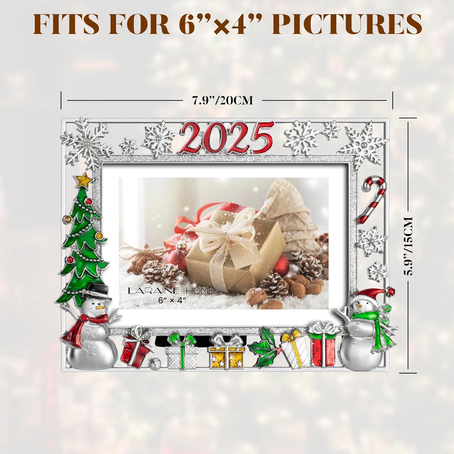 LARAINE Picture Photo Frame 4x6 Metal 2025 Christmas High Definition Display Pictures for Tabletop Home Decorative Holiday Gift