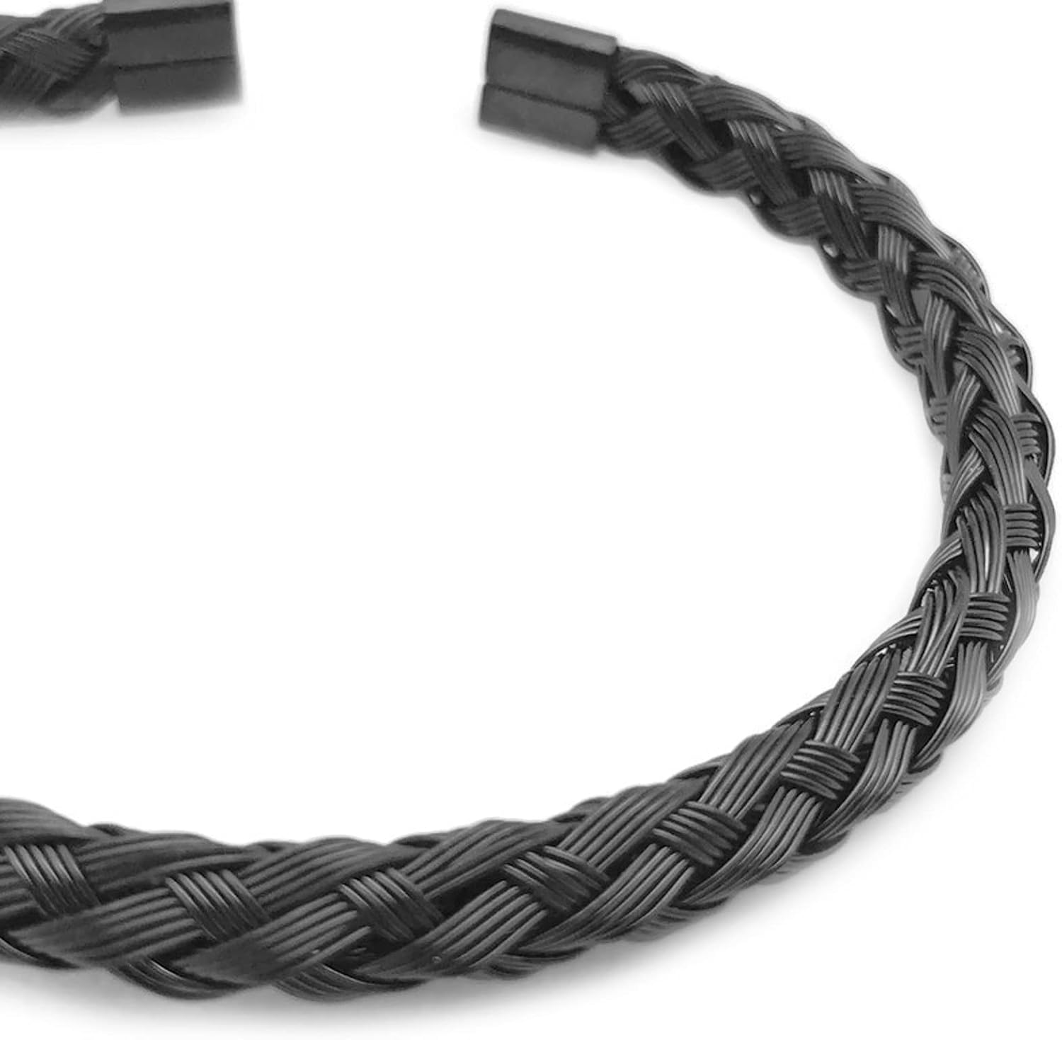 Made from 316L Stainless Steel, this braided metal wire cuff bracelet will NEVER tarnish. You can wear your bracelet bathing, swimming, running, in the rain, working out and it will always look as good as the day your received it. This stunning piece of jewelry is crafted from small stainless steel wires braided in a spiral pattern. You will love how it looks and how it feels. The smooth braid texture is finished on both ends with rounded stainless steel end caps to ensure nothing will catch on your clothes or scratch your skin. It is easy to put on and very comfortable. The flexible wire allows you to easily expand the opening while maintaining its shape. Recommended for wrists 6.5 to 9 inches. All this and it ships in a beautiful satin pouch. Great for storage and/or gift giving to a special man or woman in your life!