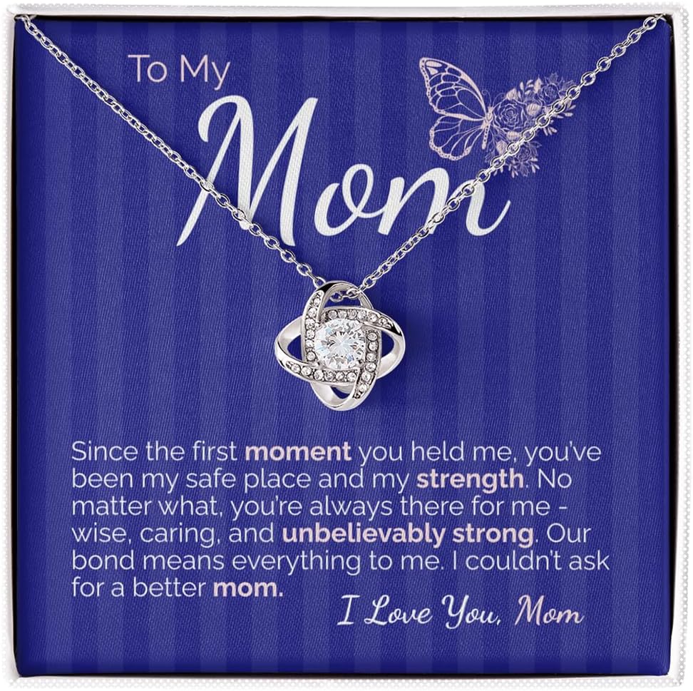 Whether for her birthday, Christmas, Mother’s Day, or simply to show your love, this necklace with message card is a unique gift idea for your mom she’ll cherish for years to come.More than an accessory, this sentimental necklace gift for your mom is a keepsake she’ll treasure forever. A unique keepsake jewelry for women, it highlights the unbreakable bond between you and your mom and makes any occasion memorable.Specifications: ✔ Gift-ready box (luxury mahogany w/ LED available) ✔ 14k white gold finish over stainless steel ✔ Adjustable 18""–22"" chain, lobster clasp ✔ 6.5mm cubic zirconia stone, lead free