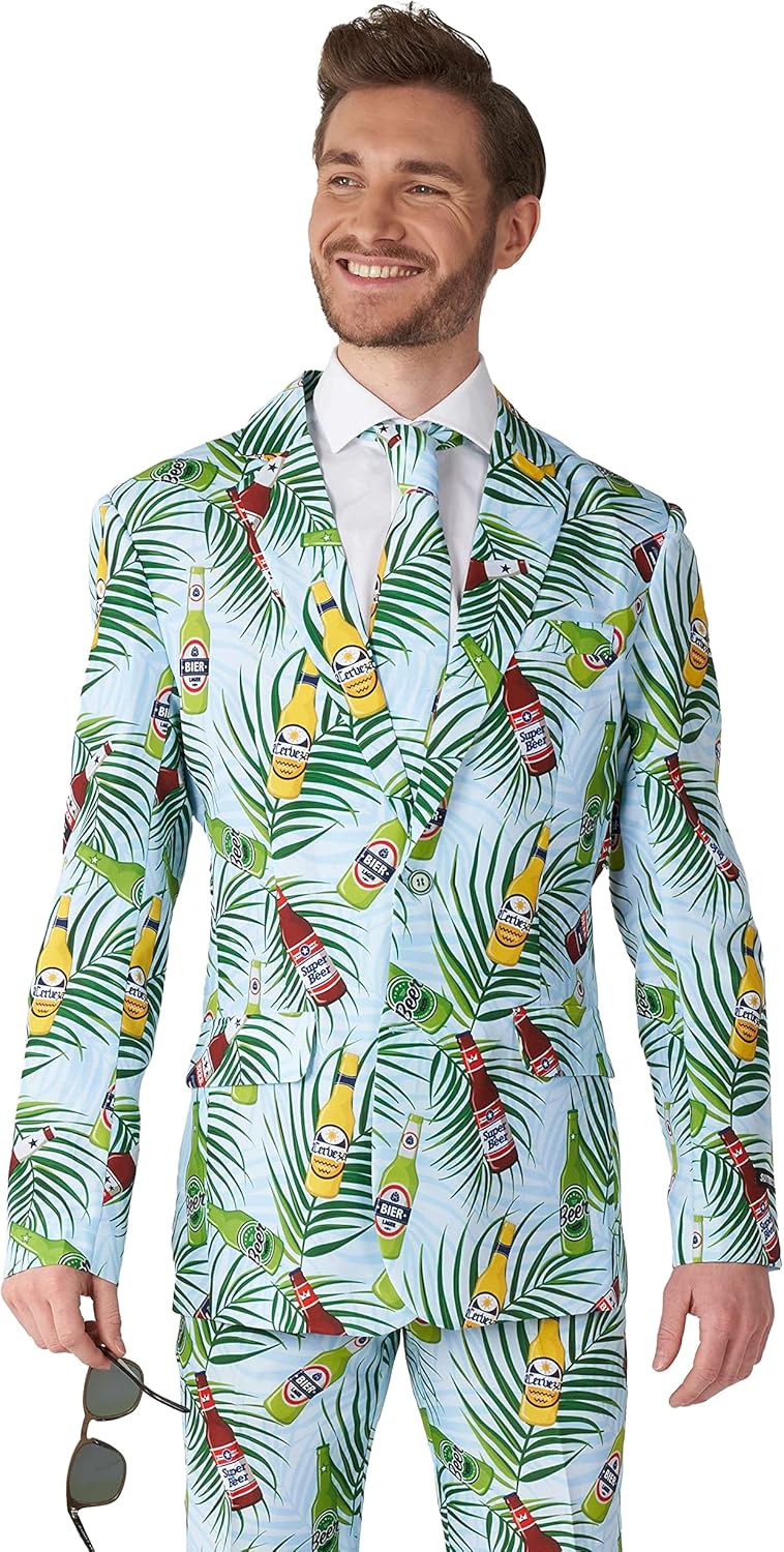 Not a big fan of one-size-fits-all costumes but still want to follow the Halloween dress code? If you're looking for cheap yet cool clothes you've come to the right place. Whether you like to dress as a fun character or you are just into creepy horror outfits, we've got you covered. Prints with skulls, skeletons, blood, death, zombies, pumpkins, ghosts, it's all there. But also if you like to keep it less scary, Suitmeister offers your new go-to Halloween suit - for example the Videogame, Casino Slot Machine or Tropical suits are great options as well. All of the suits come with a fancy blazer, pants and a tie, so every man will look good in it. Show your sense of humor and your sense of style at the same with an outfit from Suitmeister. It's high quality clothing for low prices!