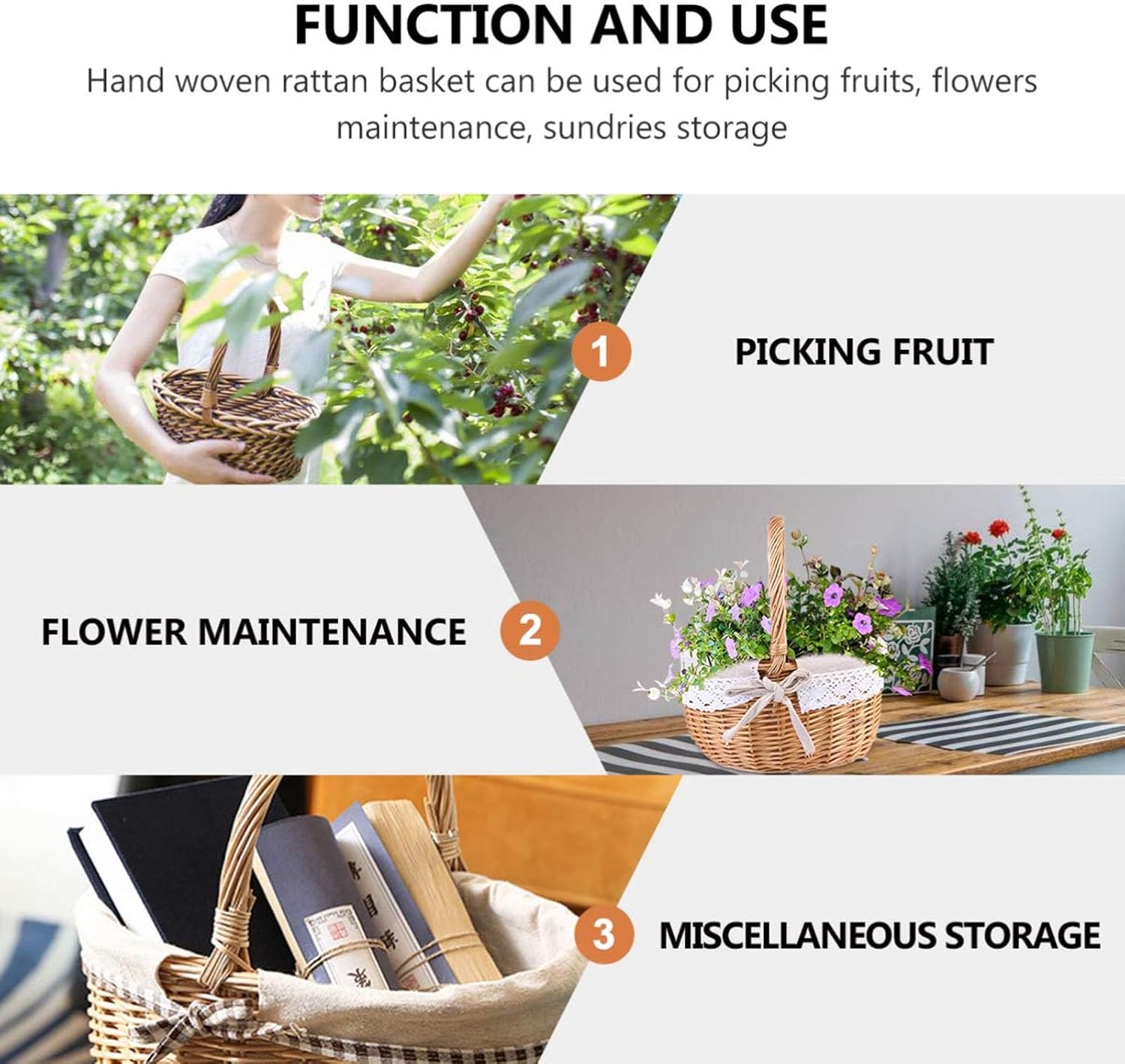 Specification:Item Type: Woven BasketsMaterial: RattanWeight: Approx. 713g/25.2ozProduct Size: Approx. 26x28x20cm/10.2x11.0x7.9inPackage List:2 x Rattan Flower Basket