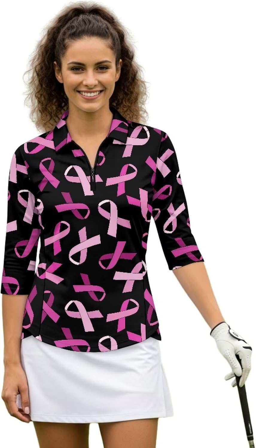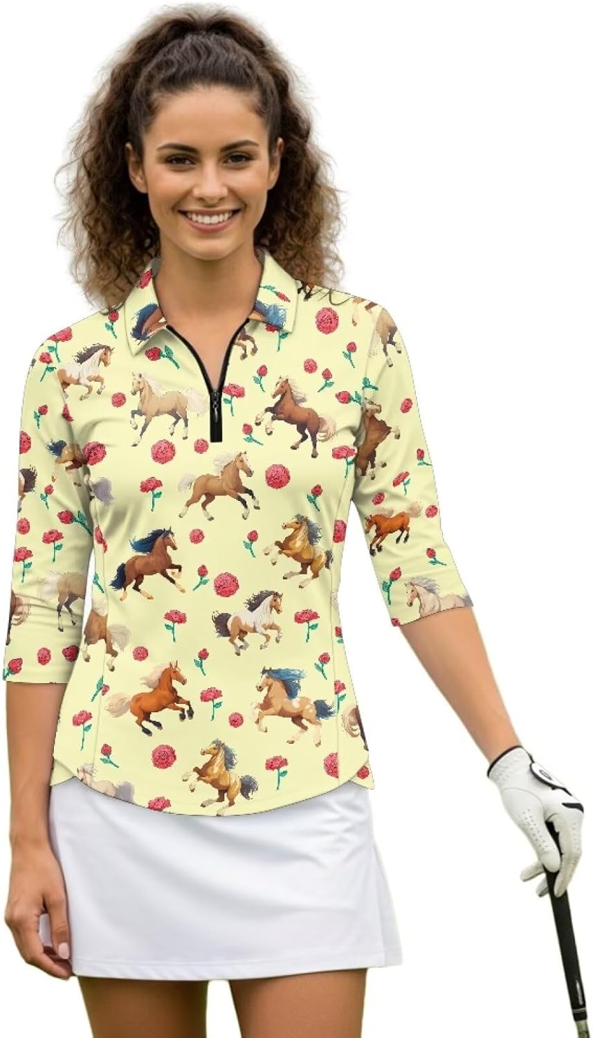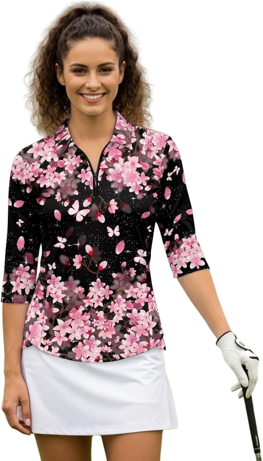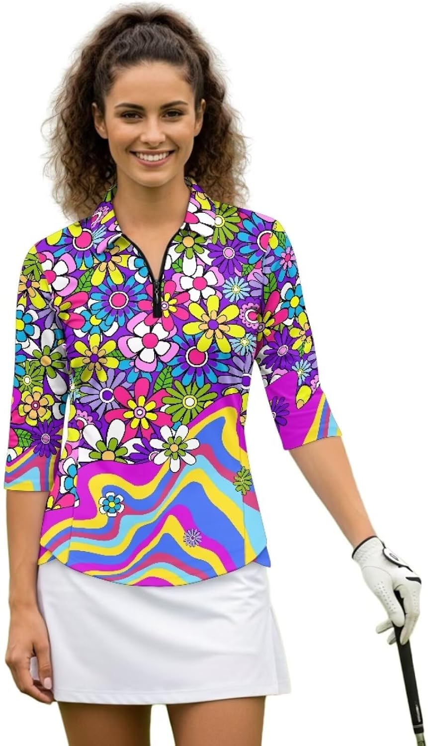 Psaytomey Womens V Neck 3/4 Sleeve Golf Shirts Material: This Polo shirt is soft and stretchy, and it can quickly dry and dry, keeping you dry and comfortable throughout the day. Make sure to be free to play golf, run and tennis Features: V-neck design can slim the neckline and show fashionable femininity.1/4 zipper collar design can be adjusted to adjust the depth of the neckline to match your dress code, temperature or occasion. For sports and outdoor activities This golf tennis shirt is also a good choice for halloween, thanksgiving, christmas, birthday, for mom, wife, girlfriend, etc Occasion: Women's V-neck golf shirt is suitable for all kinds of sports workout and outdoor activities or daily wear. Suitable for spring, summer and fall. Cool and fashionable combination, ideal for golf or tennis lovers Notes: Can be washed by hand, do not soak for a long time, do not bleach, and the temperature of the cleaning solution should not exceed 45ºC Due to different measurement methods, errors within 1-2cm are normal Due to production batches, machinery and equipment and other objective factors, it is difficult to avoid or there will be a small color difference, location and size and other errors, such as the above problems are normal phenomenon